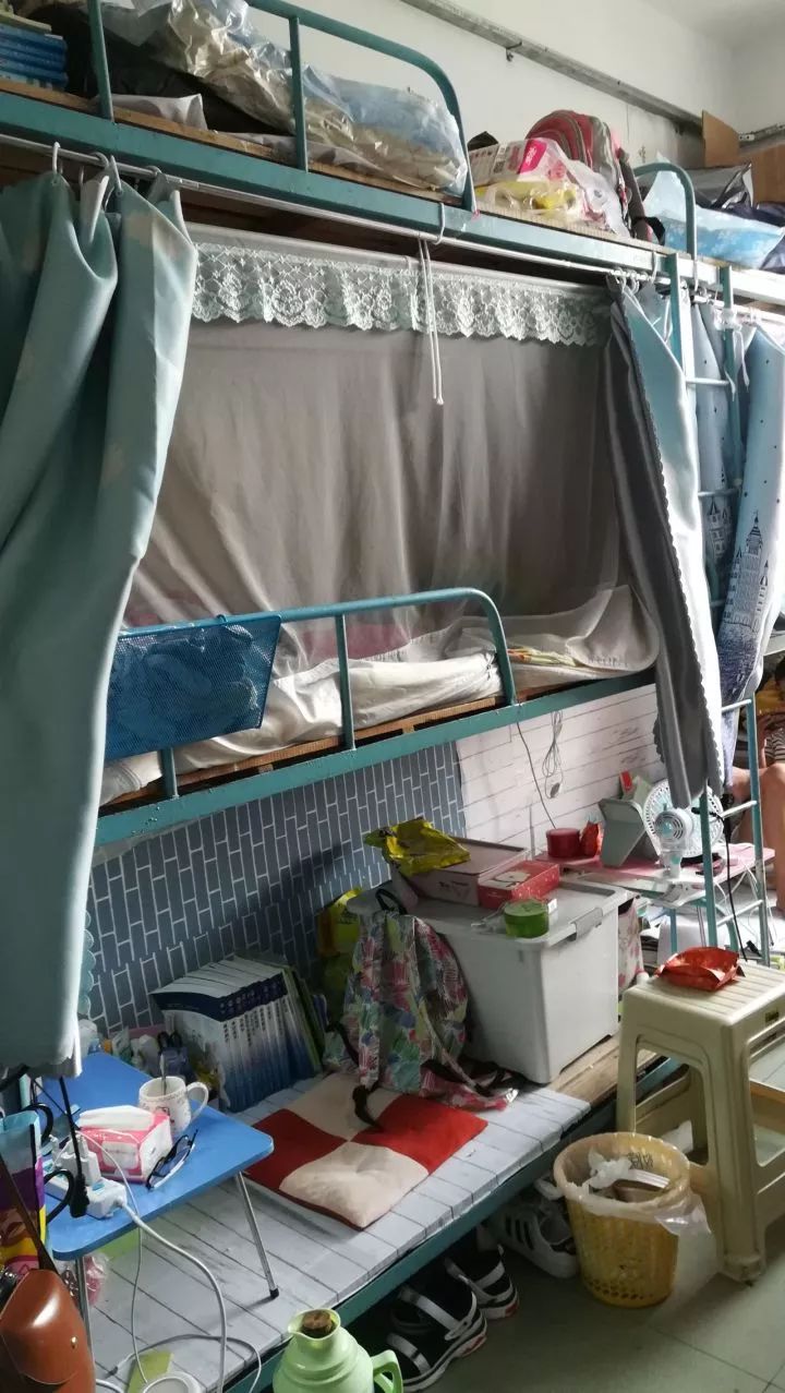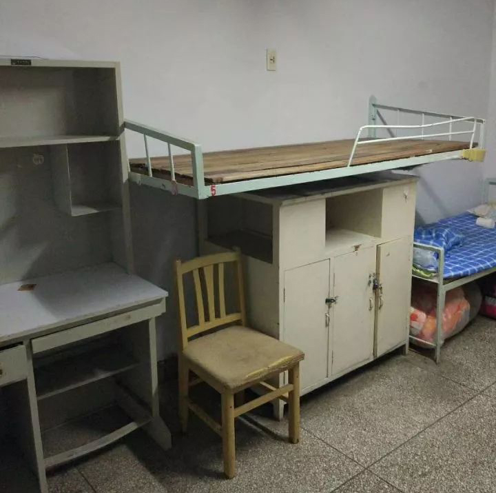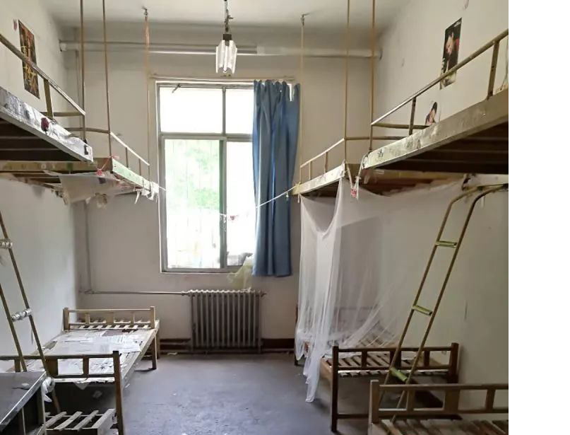這還不算是驚悚的,我覺得更嚇人的是這種床,可能是傳說中的“吊床”! 整張床就用4根瞇細(xì)的鐵絲吊起來,翻個身沒準(zhǔn)還能睡出秋千的效果,心疼住在這里的學(xué)生......