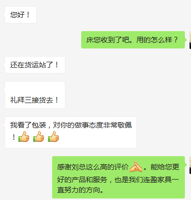 不知道你心目中的深圳公寓床是如何的?但凡產(chǎn)自連盈家具的公寓床,都是用冷軋鋼制成的好床。從生產(chǎn)到發(fā)貨,再到后續(xù)的每一個(gè)環(huán)節(jié),連盈家具都謹(jǐn)慎負(fù)責(zé)。有時(shí)候,客戶簡單的一句贊美,都會讓我們開心一整天。“對你的做事態(tài)度非常敬佩”,當(dāng)業(yè)務(wù)員得到客戶這樣的評價(jià),心里直接樂開花了!