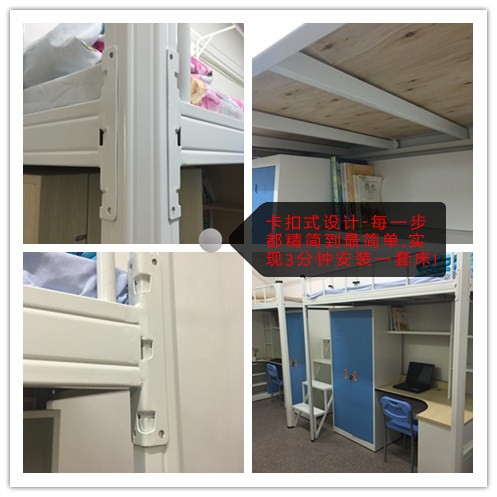 公司學(xué)校上雙層床,床體采用冷軋鋼板2.0mm厚,菱形三角學(xué)設(shè)計(jì),床體鋼制,給人一種穩(wěn)固安全的新穎感。包裝采用防撞紙箱+保鮮膜護(hù)體(保證運(yùn)輸過(guò)程安全),適用于:學(xué)校宿舍、員工宿舍、公寓宿舍等..