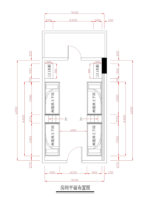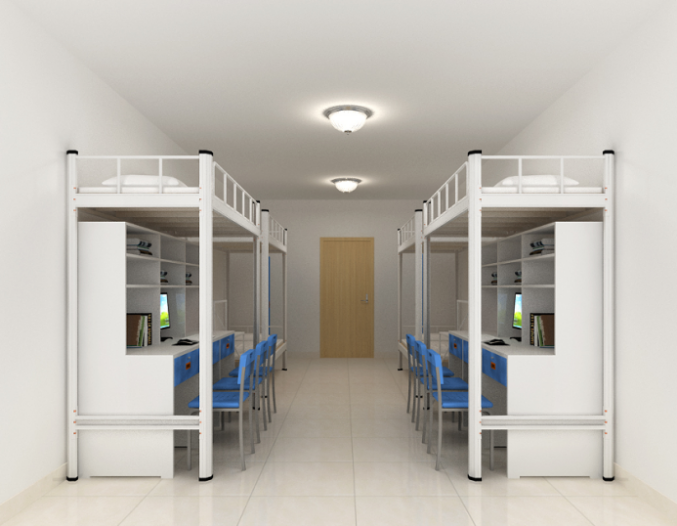 以下是個別客戶案例,每個房間為6人,我們?yōu)槠渑涮琢?/span>連盈家具公寓床,搭配三人書桌跟衣柜: